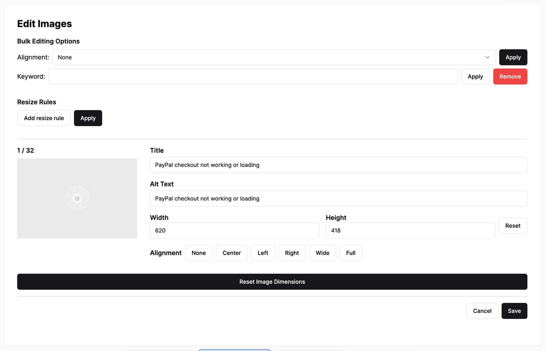- Image Editing Features: Includes advanced options to edit image parameters such as title, alt text, width, height, and alignment within posts.