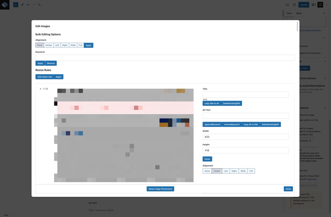 - Comprehensive Image Editing: Users can effortlessly modify image titles, alt texts, dimensions (width/height), and alignment settings.